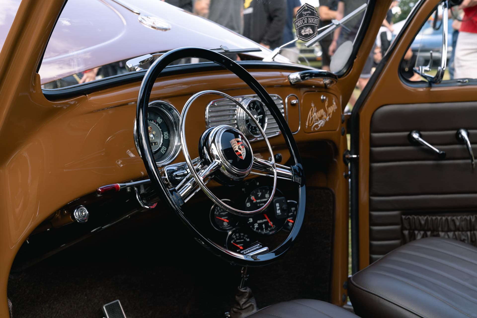 Brown isn’t usually a color that catches the eye, but this Porsche Sepia Brown ’57 oval is difficult to miss – every detail is immaculately presented with a theme that runs consistently throughout.