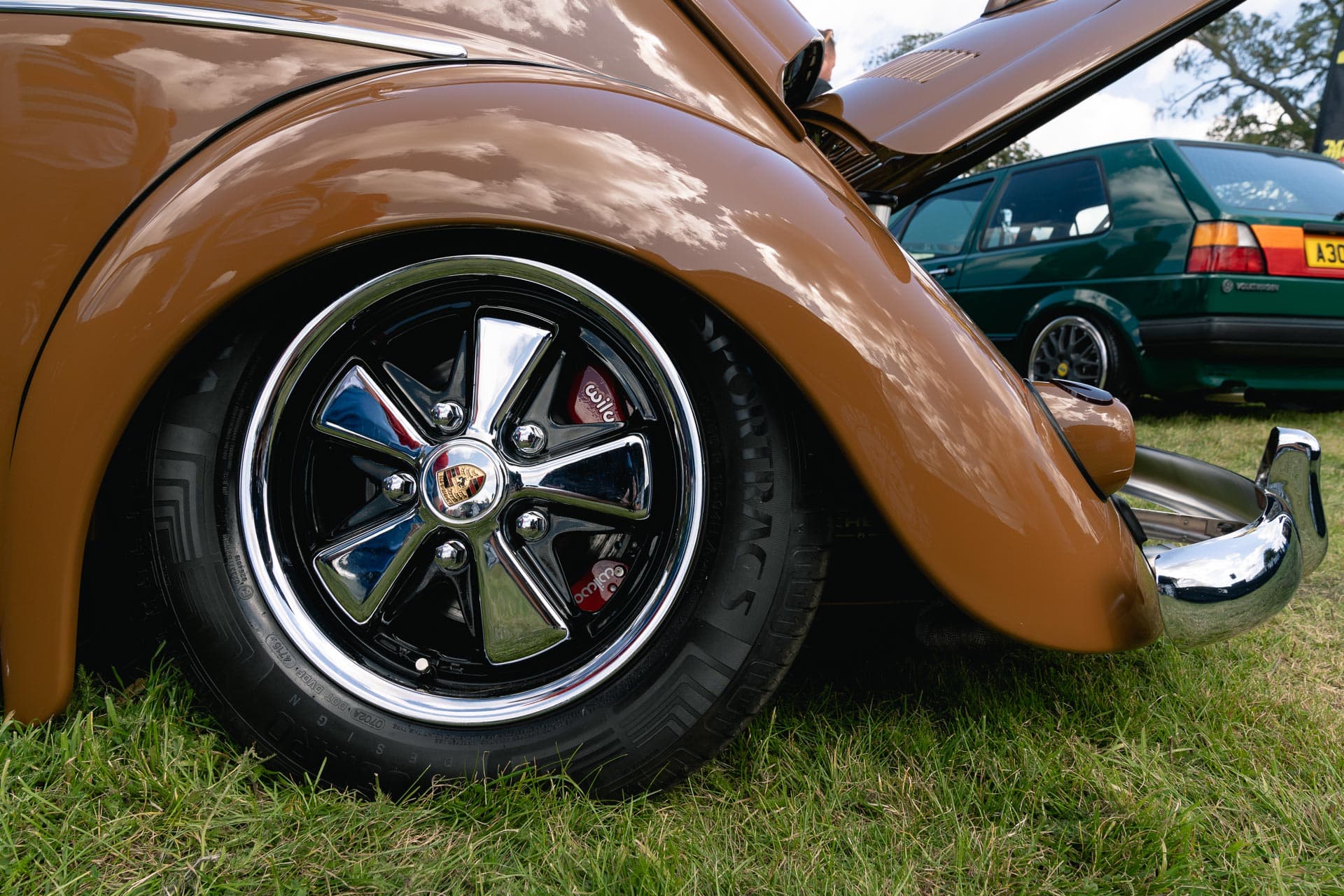 The Porsche Fuchs wheels are a design classic and have been polished to match the bright work on the rest of the car.